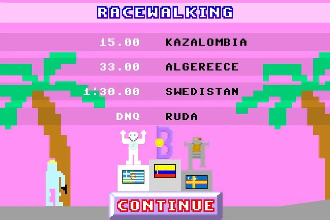 Justin Smith's Realistic Summer Sports Simulator is an Olympic game simulator for up to four players. Success is governed by challenging physics based gameplay with a simple graphical style.