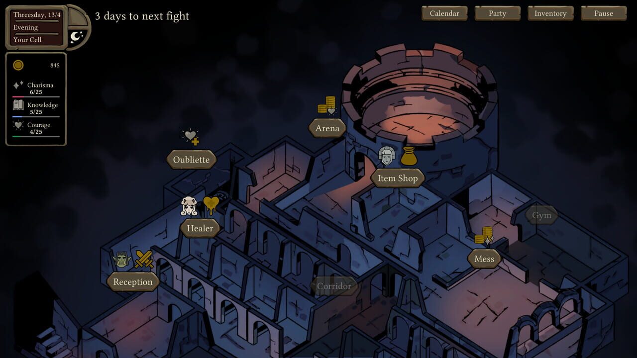 You have been imprisoned in the royal dungeon. Forced to participate in weekly gladiatorial combat, you will surely die unless you make some powerful friends.