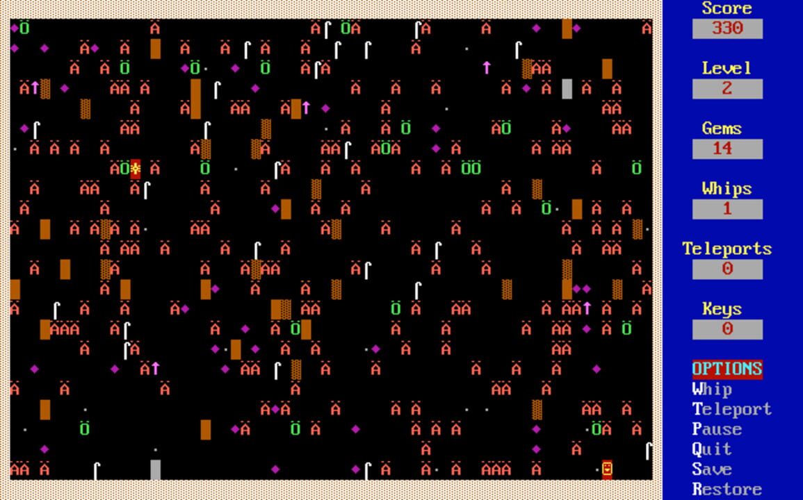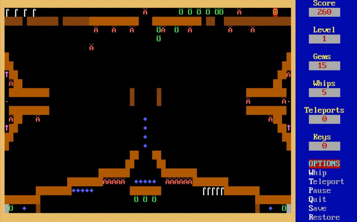 Kingdom of Kroz is the first game in the Kroz series created by Scott Miller. It is also the first game released by Apogee Software. A text-mode action/puzzle game. You have to get to the exit on each level, which is made more difficult by obstacles...