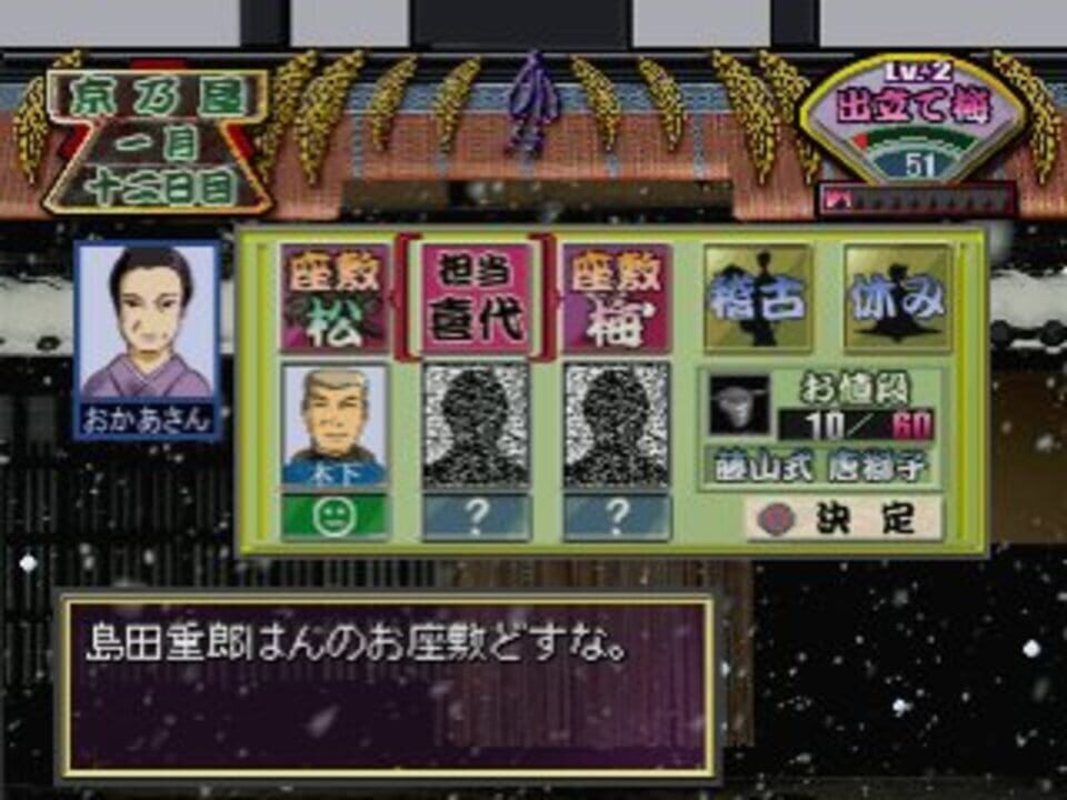 Kyoto Maiko Monogatari is a simulation game in which the player controls a young girl that begins her training to become a maiko, the game features music mini games (like copy the movements of the trainer in a drum), and different levels of training ...