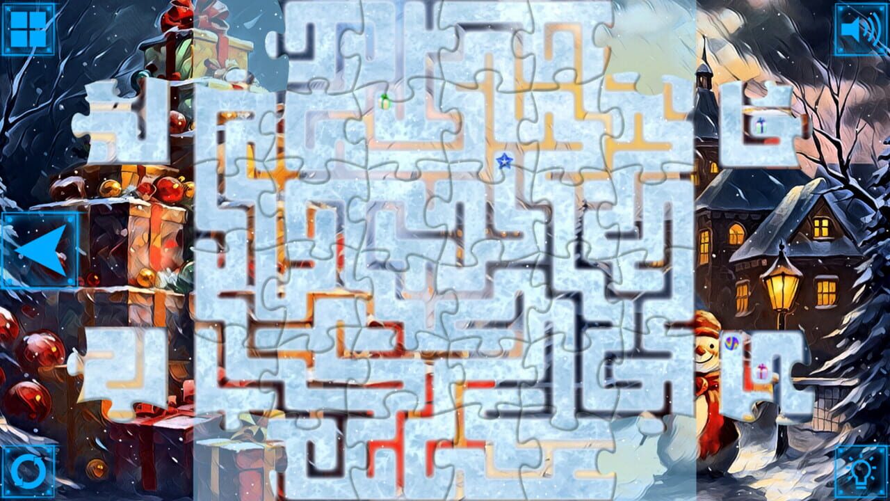 Mazzle Christmas is a straightforward yet surprisingly challenging celebration of the simple beauty of mazes and jigsaw puzzles in a Christmas style.