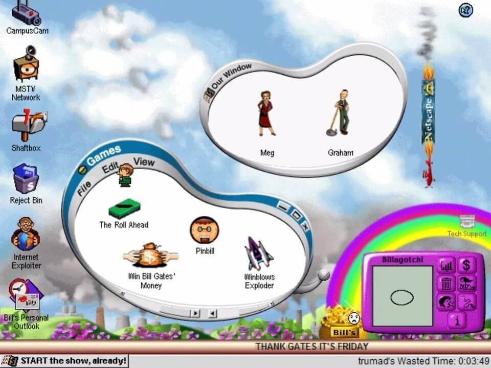 Microshaft Winblows 98 is a 1998 interactive comedy video game for Windows and the Classic Mac OS. It parodies the then-popular Windows 95 operating system, as well as Microsoft co-founder Bill Gates....