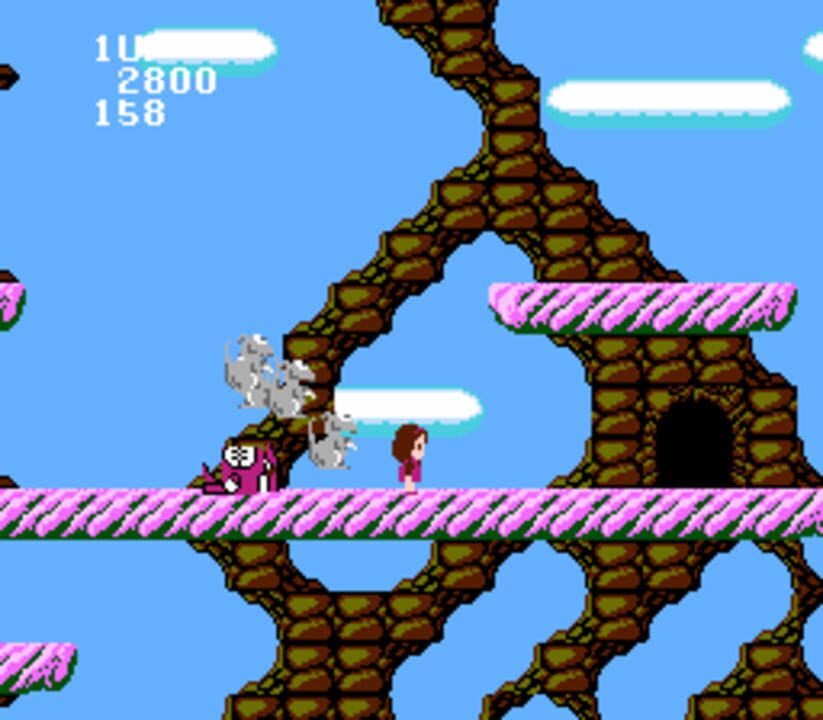 Miracle Ropit's Adventure in 2100 is an action platformer featuring the titular robot, piloted by a young girl. When the robot is hit, it will break down and dump the girl out. The girl cannot shoot enemies, and will die after 30 seconds if she canno...