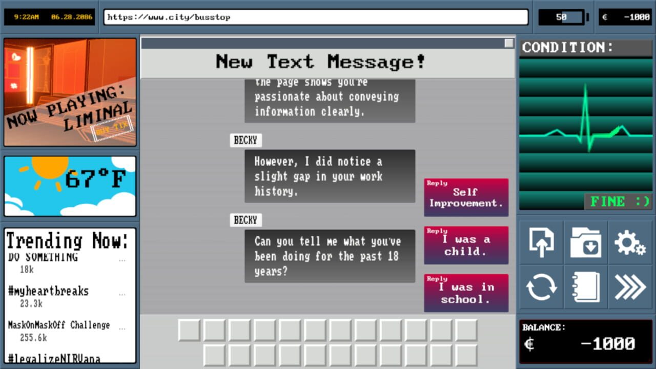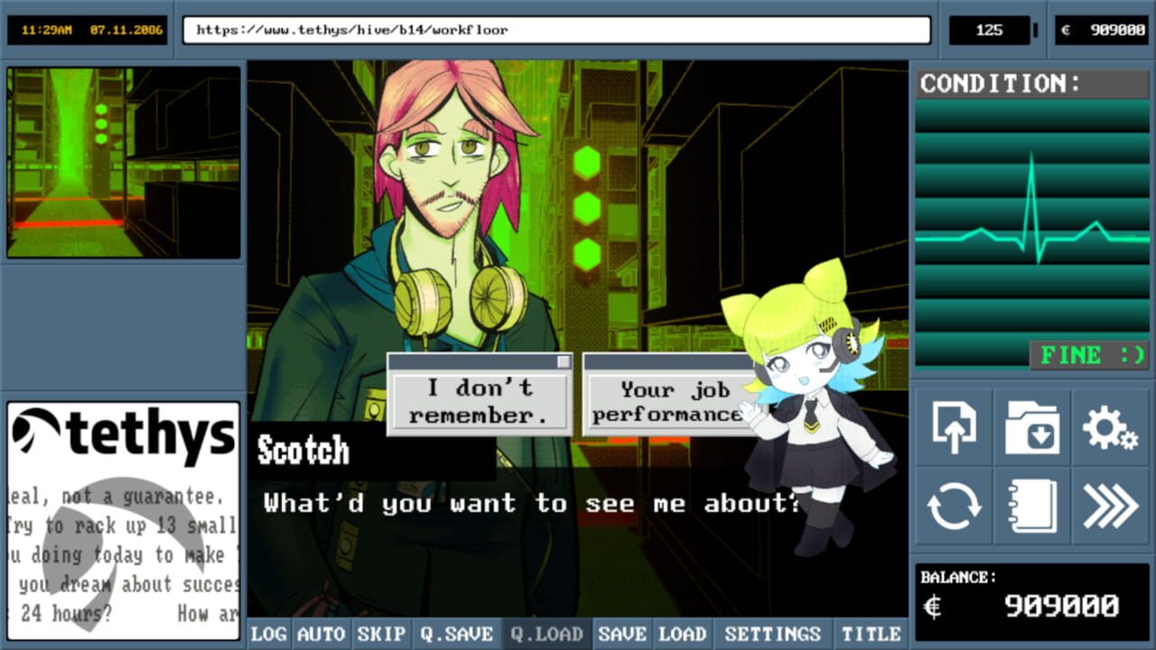 Model Employee is a corporate horror visual novel where players take control of the latest individual amongst millions to start working in one of Tethys' online shopping labyrinthine warehouses. Just discharged from the hospital and massively in debt...