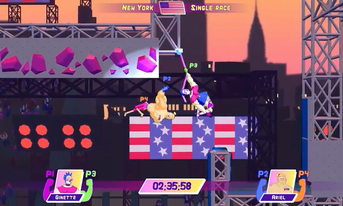 Grab, hang, swing and grapple your way to victory in this ultimate contest of strength, technique and… uh… beefiness. Choose your athlete from among a delightful lineup of miraculously muscled lads and ladies and play with up to three friends. Mucho...