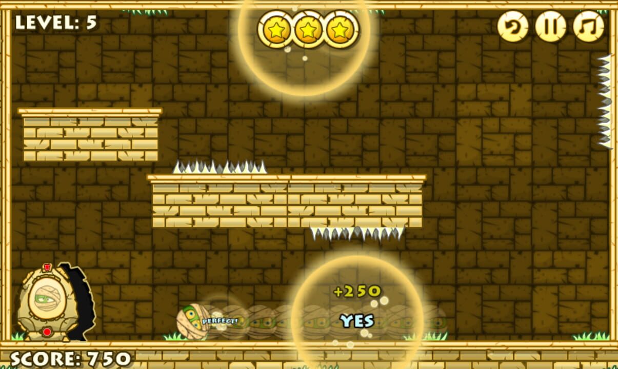 Help the mummy get his head back to the sarcophagus. Click and drag your mouse to aim and release your shot. Collect all the coins, and watch out for obstacles.
