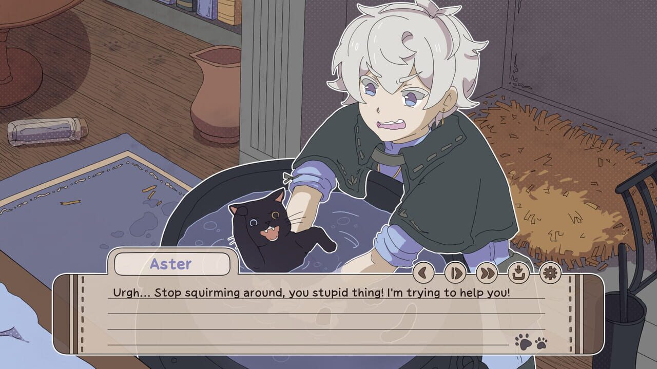 A cute, wholesome yaoi / boys love visual novel about a grumpy wizard and... a black cat? Wait, what?