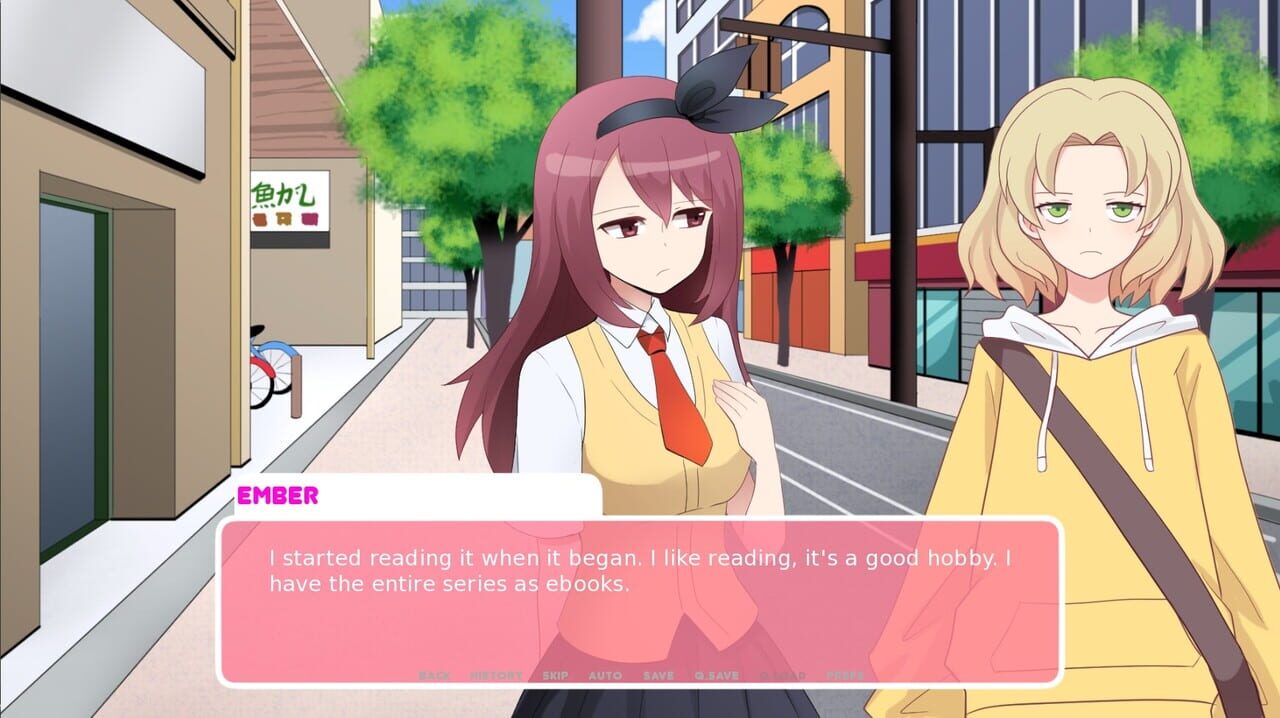 My Bully, My Crush is a short kinetic visual novel with yuri romance as its theme. It is around 40 minutes long.