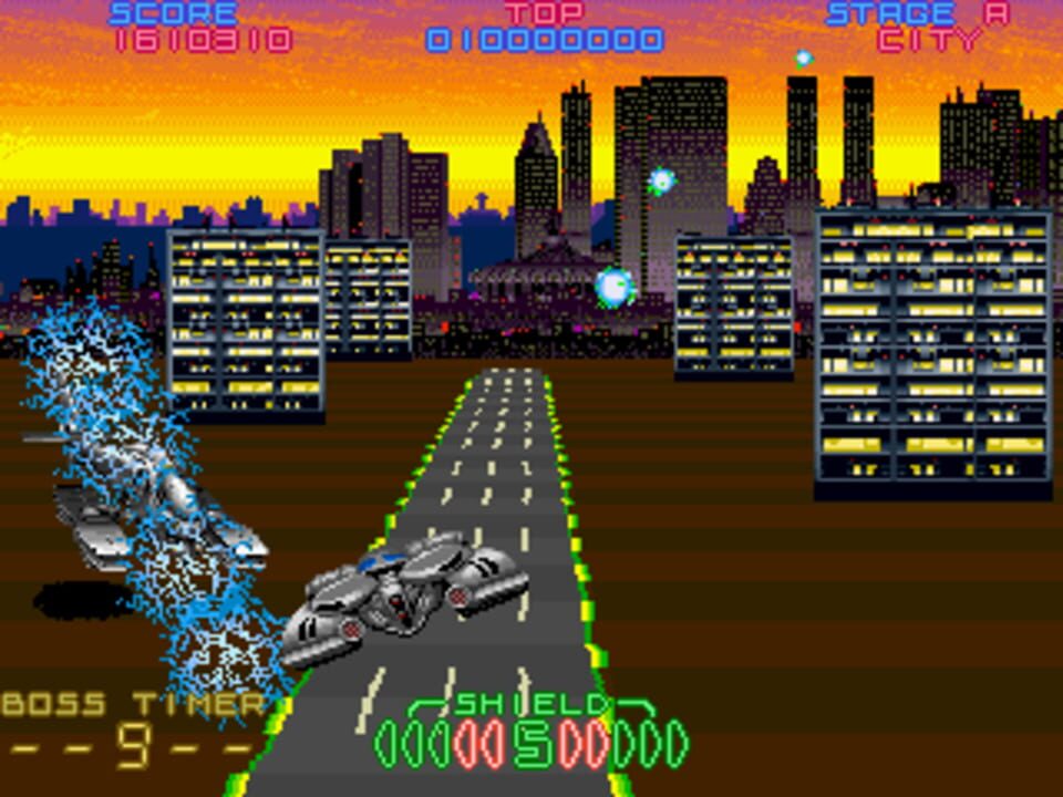 Night Striker (ナイトストライカー) is an arcade game developed by Taito. It is a futuristic on-the-rails shooter which plays similarly to Sega's Space Harrier, though has you pilot a hover vehicle instead. The game was brought to the Sega Mega-CD in 1993, wh...
