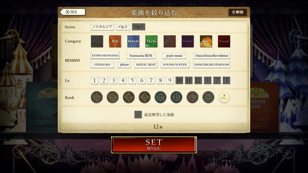The cloud-based home release of the arcade series Nostalgia, released as part of Konami's Konaste line. Largely based on Nostalgia Op.3, the most recent arcade release at the time of launch.