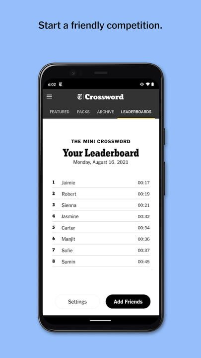 A mobile app consisting of various games by the New York Times, such as the Crossword, Wordle, Spelling Bee, The Mini, and more.
