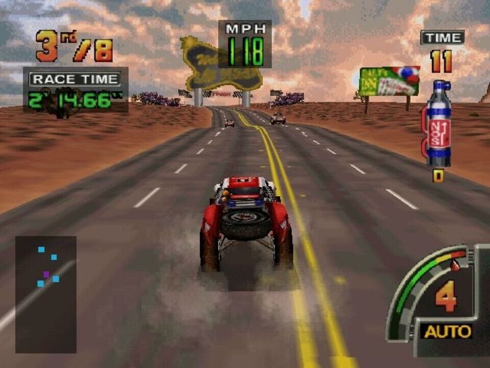 The END of the ROAD is only the BEGINNING. Strap yourself in and get ready to ride! Players battle the elements and each other in a race that takes them across 6 rugged courses including the Mojave Desert, Las Vegas and Pike's Peak! Choose Circuit Mo...