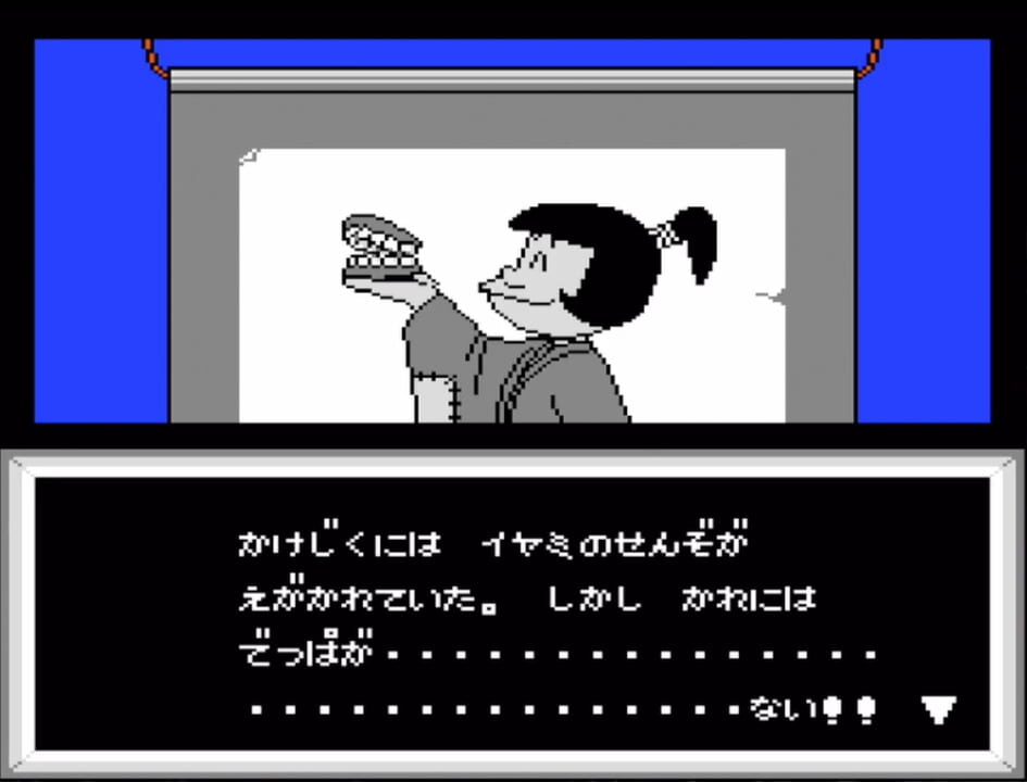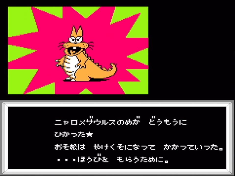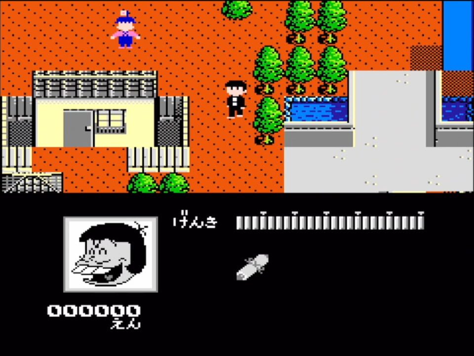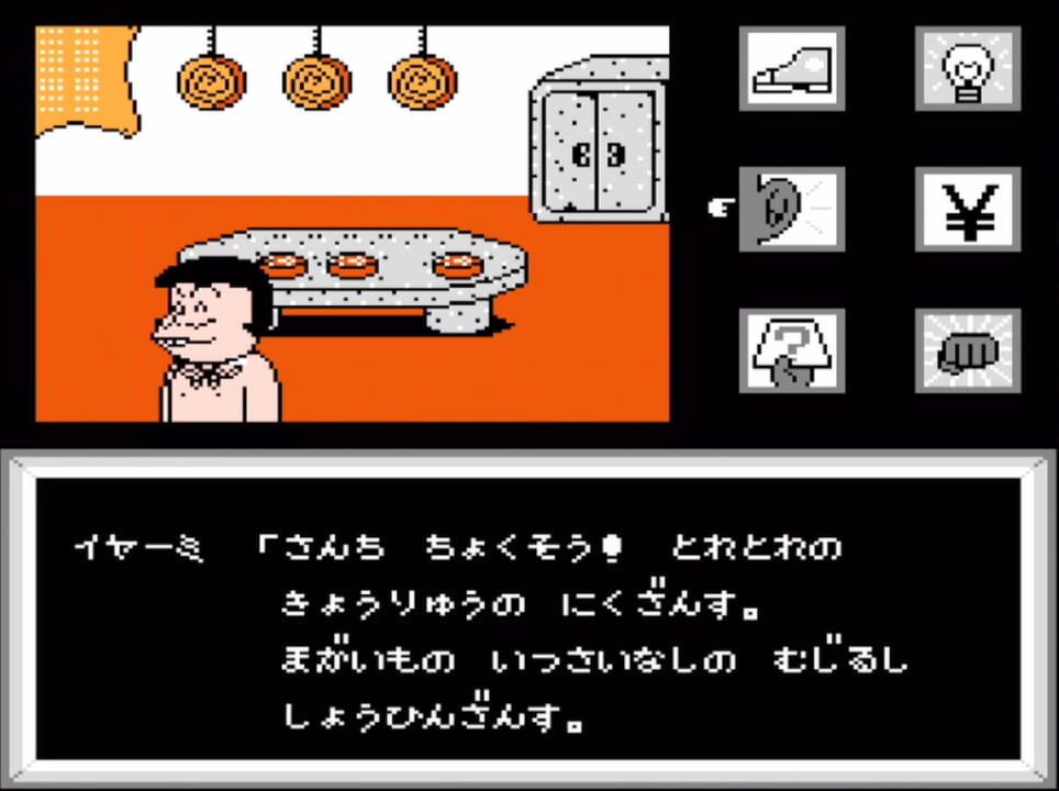 The second game based on the Osomatsu-kun anime and manga, released in 1989 for Famicom. Osomatsu-kun: Back to the Me no Deppa no Maki is an Adventure game, developed by TOSE and published by Bandai Shinsei, which was released in Japan in 1989.