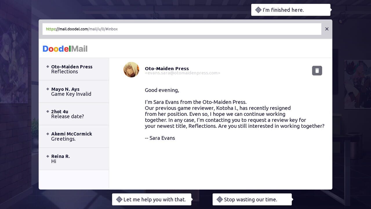 Your life is a peaceful one. Each day, you work alongside your (otherwise?) all-female workforce in the pursuit of creating otome games. Will you complete your life with a cute girlfriend? Will you be doomed to a life of normalcy? Or...? Find out in ...