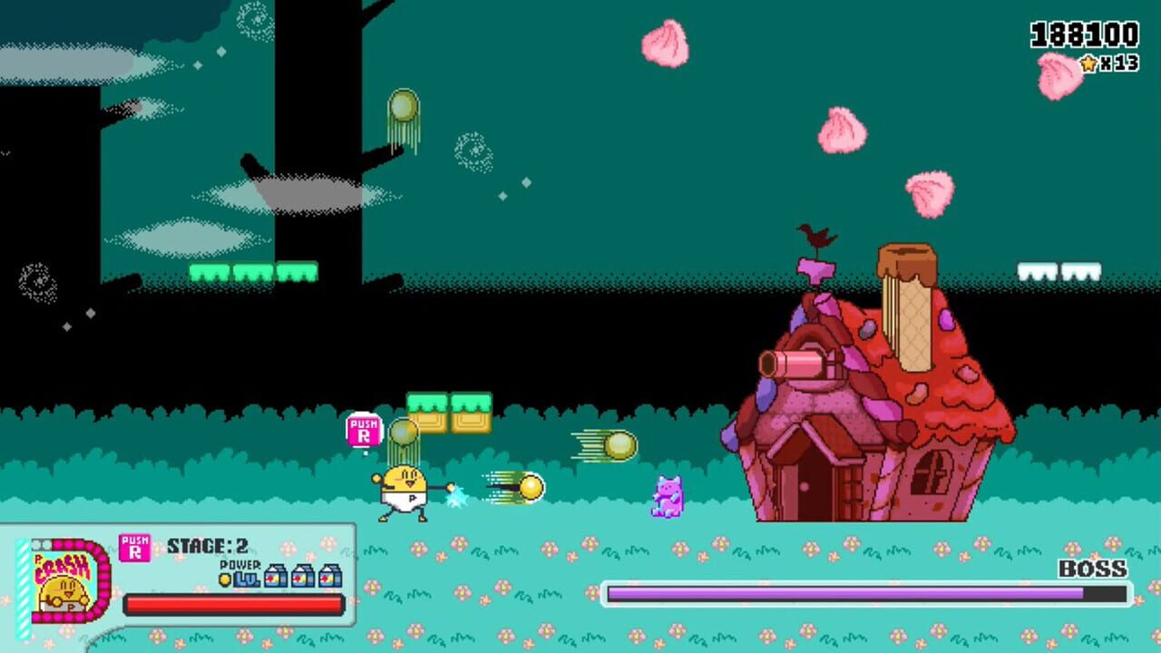 Armed with a big smile and punches that fly endlessly,have fun progressing! P-PAN can fly and hovering,so even if you're not good at play jumping action,this 2D action shooting game has simple controls that can enjoy.