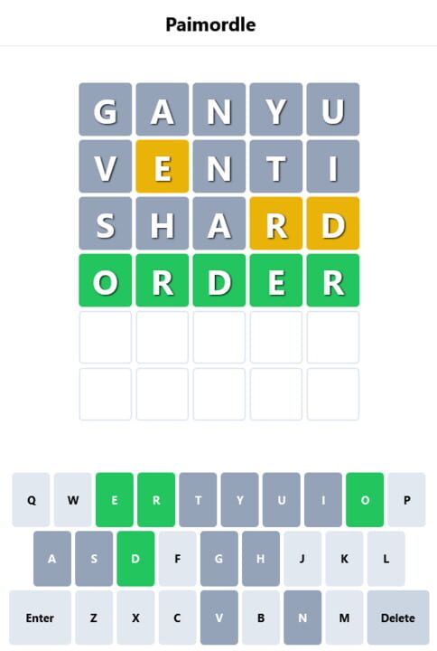 Paimordle is a Genshin Impact themed version of Wordle.