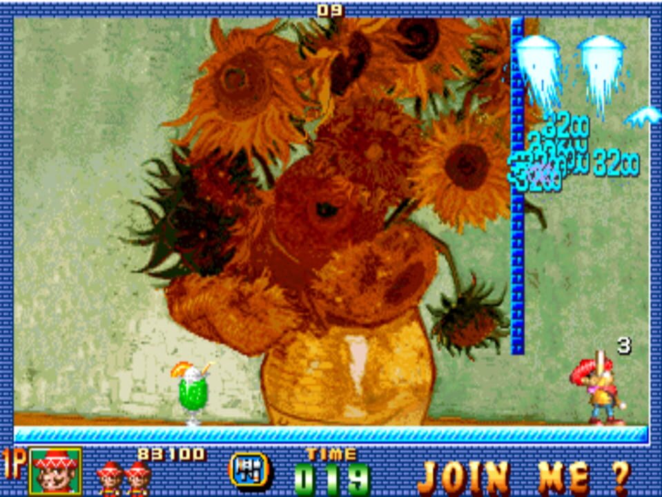 Your character is locked inside an art museum and has to avoid bouncing balloons of various sizes, most of which split when hit. The player has the option of "normal" play with stages or "panic" mode in which balloons will appear continuously. In nor...