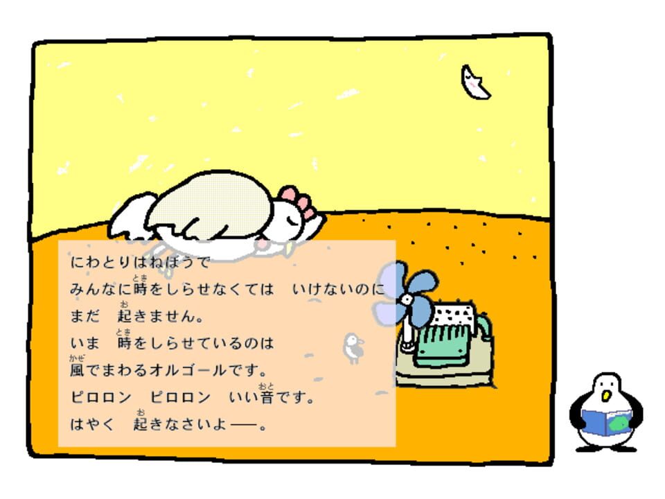Point-and-click game distributed by BNN, based on the original work by picture book writer Jun Takabatake. Each scene in the game unfolds like a narrated storybook, with clickable elements for new animations and music.