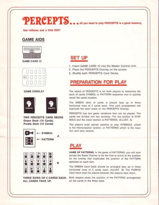 Percepts is the only known game that Magnavox gave away for free. When you purchased the Magnavox Odyssey in 1972 you could get a free game from Magnavox if you registered the purchase by mailing the "free bonus game" coupon to them. Worked with Cart...