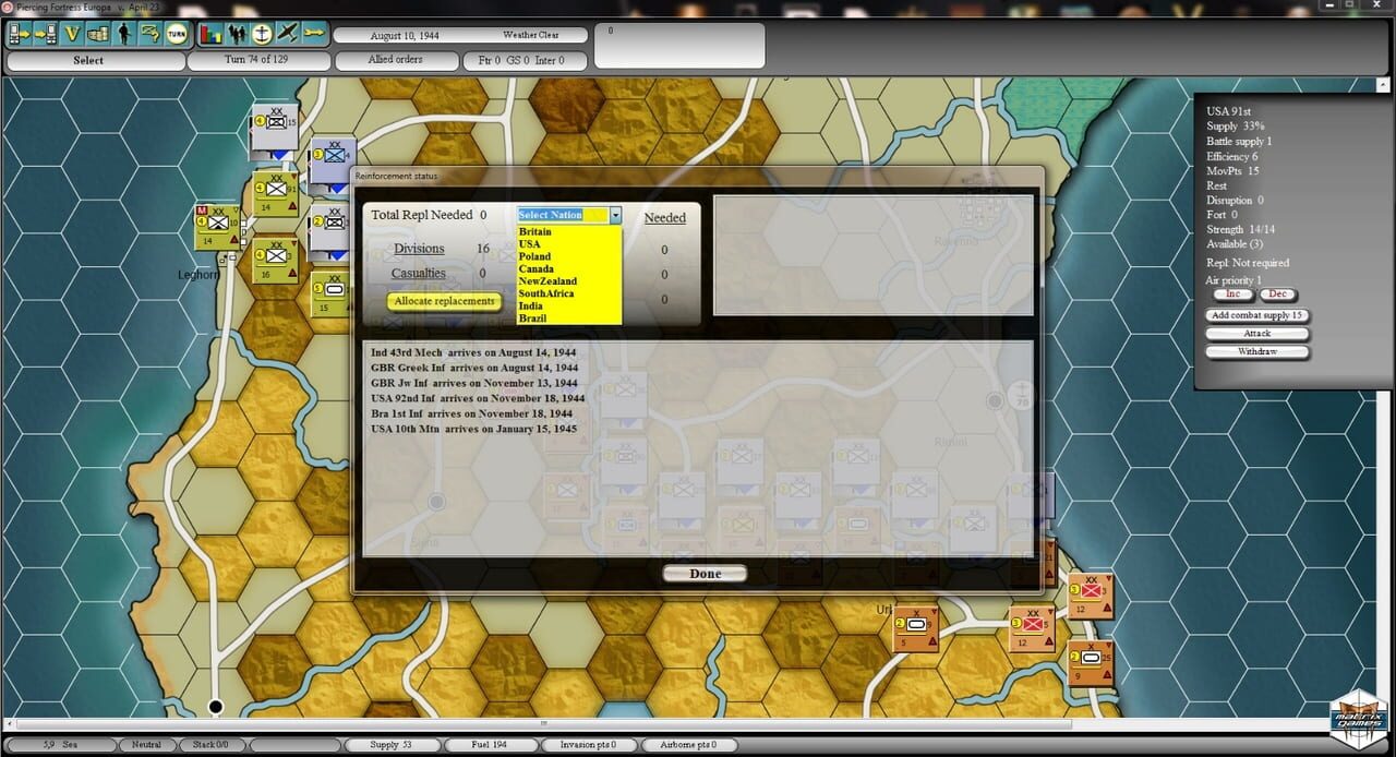 Piercing Fortress Europa is an operational wargame from veteran game designer Frank Hunter, which covers the campaigns of the Western Allies from July, 1943 through the end of April, 1945 in Sicily and Italy. Each area has its own map and time scale ...