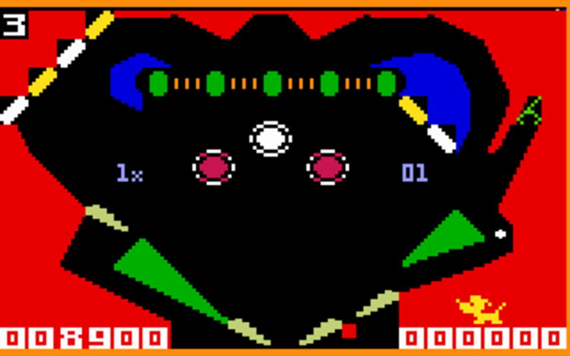 Pinball is a pinball simulation for one or two players. You begin the game with five balls, and need to score as many points as possible by hitting the ball into the various bumpers and targets on the pinball table. The pinball table consists of thre...