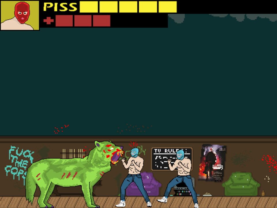 A comedic side-scrolling beat 'em up game about a man whose sheer, base desire for a good piss turns him into a large bloodthirsty wolf monster, also known as PISSWOLF. The game features colorful pixel art graphics, as well as several minigames along...