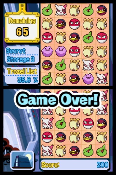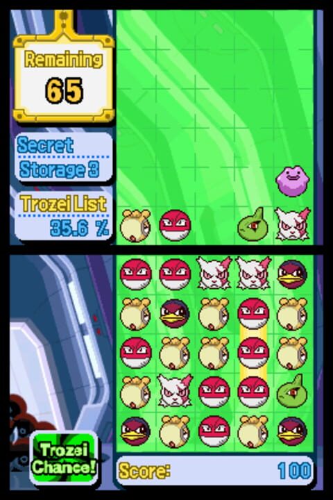 A crazy departure from your normal Pokémon game, Pokémon Trozei is a speedy puzzle game that will send your stylus flying! Your goal is to match the faces of four Pokémon in the game board to remove them, then string together more Pokémon faces to pe...