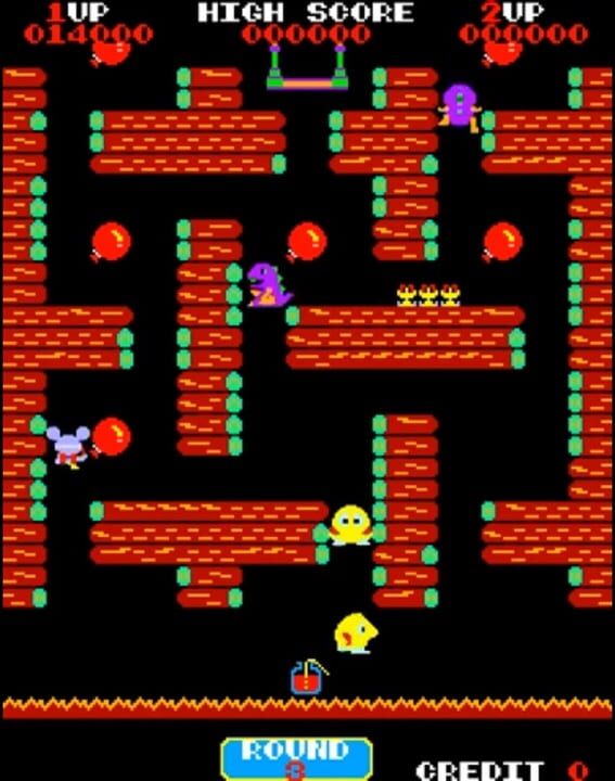 Operate POP FLAMER with lever to crush ballons avoiding or burning up monsters. Be careful! If hit by electro-shock wave emmited by HARADON, POP FLAMER will be paralyzed for a while. Flaming distance comes to be shorter gradually. Replenish fuel su...