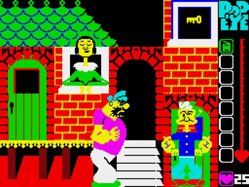 The object of the game is to collect hearts and deliver them to Olive Oyle to keep her 'lovemeter' topped up. Points are scored for hearts delivered. Bluto, UFO's, witches etc try to stop you. Some hearts are behind locked doors so you've got to find...