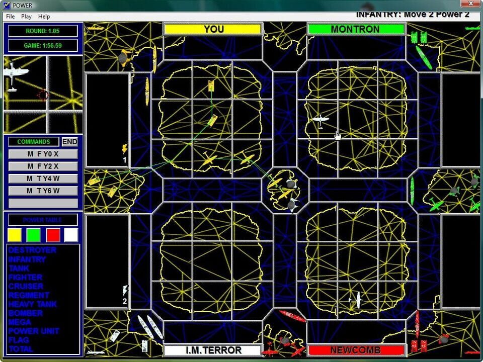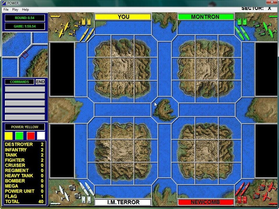 Power: The Game is an turn-based wargame in boardgame style. The objective of the game is to defeat your opponents in by capturing their Flag with infantry. Tanks, planes and ships can be used to help cover your position and give you sufficient power...