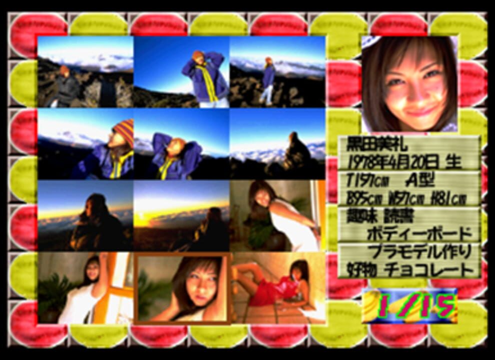 Idol Digital Photobook released exclusively in Japan for Sega Saturn. Includes a Q&A interview and quiz about Kuroda Mirei.