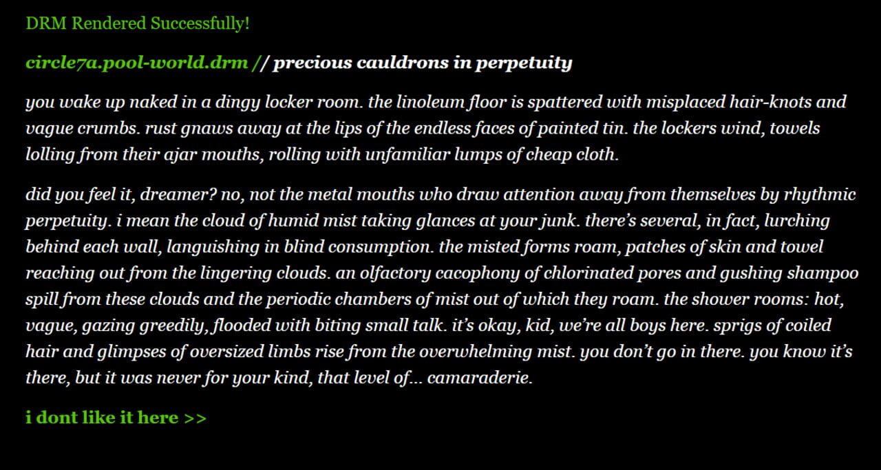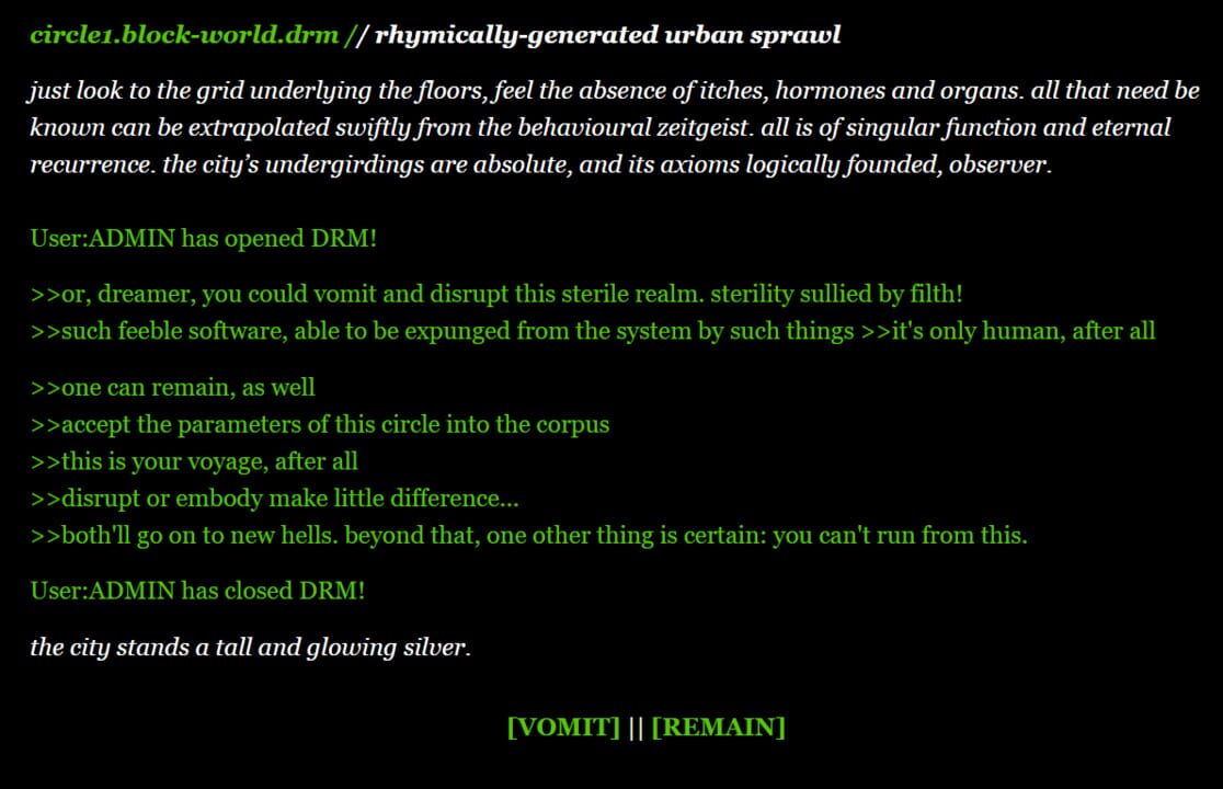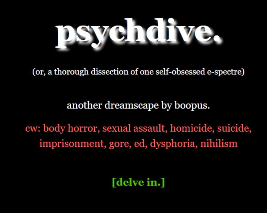 modelled after yume nikki and dante's inferno, the player is forced through a series of dreamscapes, each sinking them deeper into their personal hell.