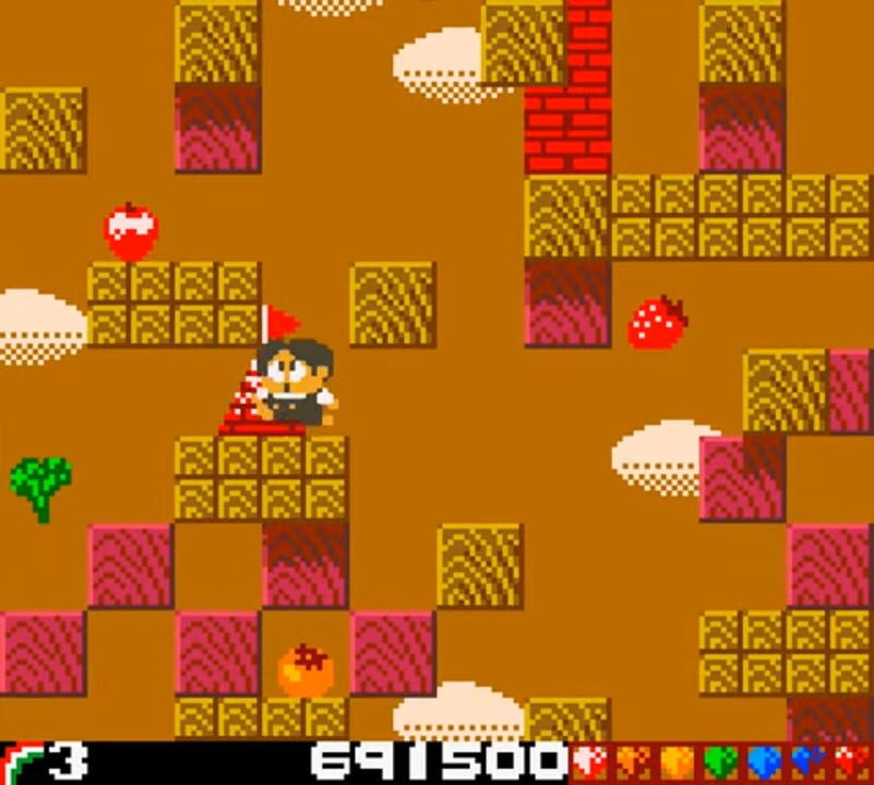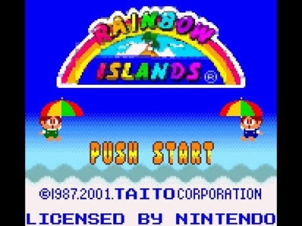 A sequel to Bubble Bobble, this Port of "Rainbow Islands" for Game Boy Color sees Bub and Bob (in 2 player mode), who are now curiously small boys rather than dinosaurs, attempting to rid the Rainbow Islands of bad guys.
