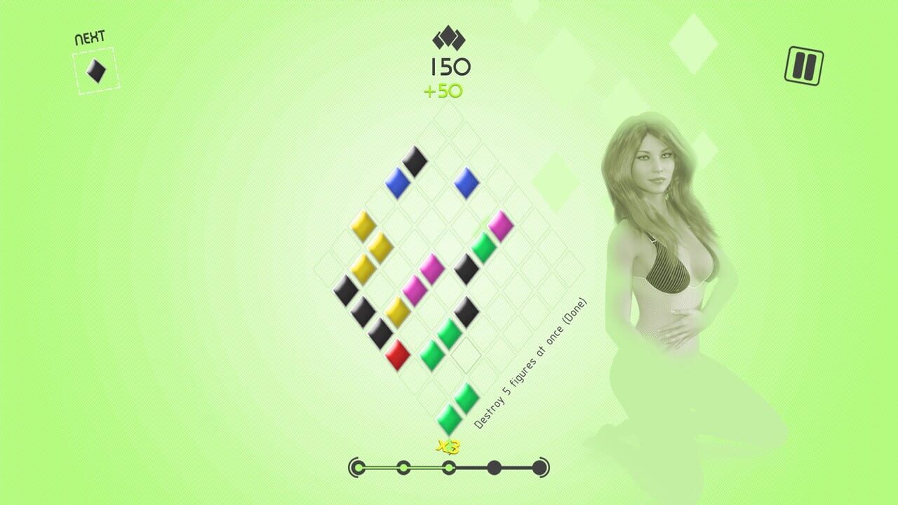 In Romby you will earn points by placing 4 and even more figures of one color in a straight line. Earn more points and open all hidden girls. Trust me it won't be easy.