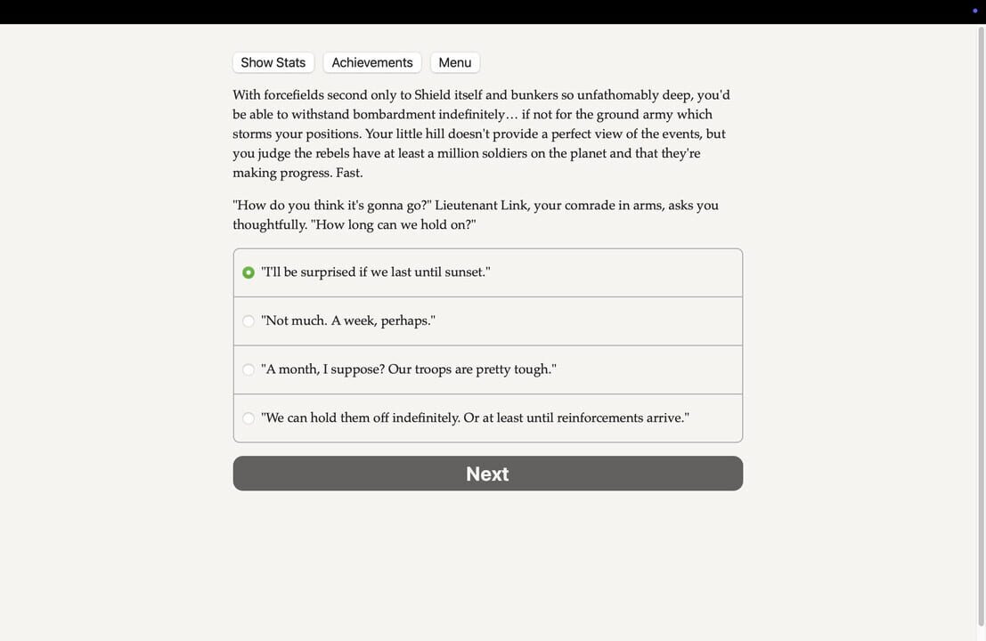 You are the Veteran. You’re the oldest android in the Solar System, a relic and survivor of the ancient past. Now it’s time for you to fight again. A text-based science-fantasy novel, 700,000 words and hundreds of choices, without graphics or sound e...