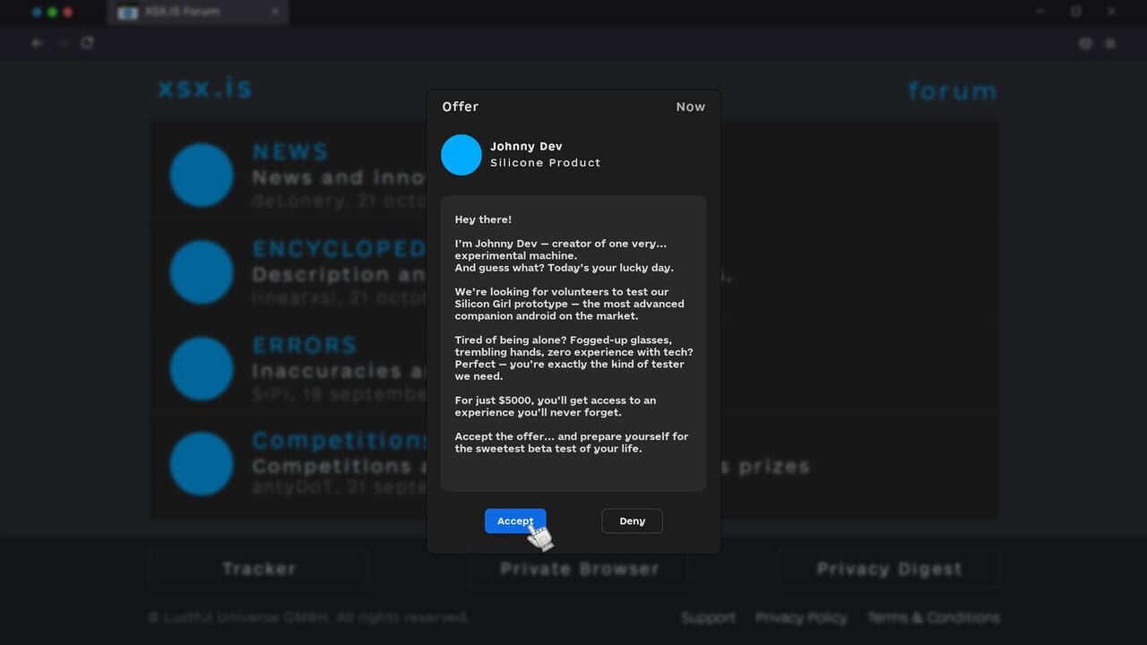 Customize your own Silicon Girl — an experimental sex android. Unlock intimate scenes, collect trophies, and spend gears before her battery runs out.