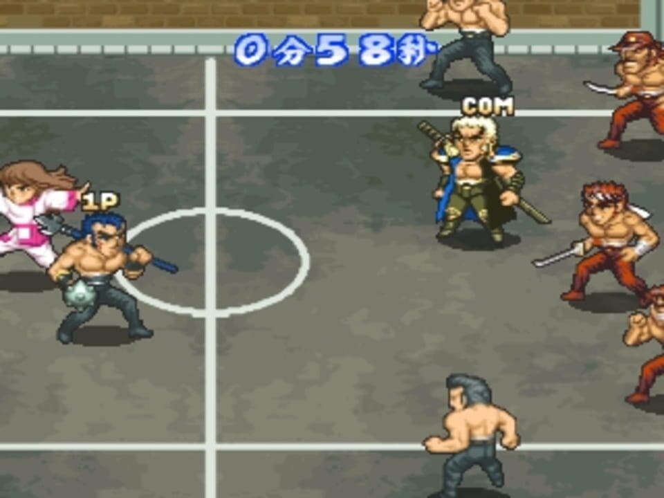 This is a dodgeball game from the Sakigake!! Otokojuku series for the Playstation.
