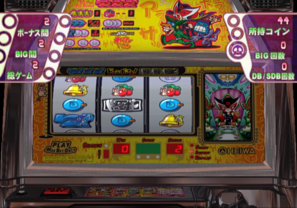 Slot machine game based on Bandai's Yattaman franchise. Featuring the character Doronjo from the show, among others.