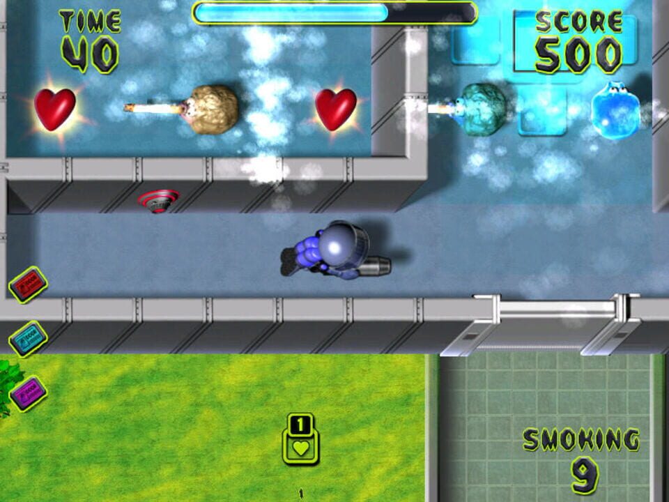 In this smoking-risk awarenesss game from the swiss federal office of public health, you are navigating the character "Oxy" through offices. You can fight the aggressive smoking balls and the cigarett...