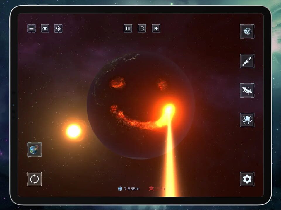 Solar Smash is a planet destruction simulator, it allows the player to use a variety of different weapons to destroy the planet. These include nuclear missiles, lasers, monsters, spaceships and asteroids.