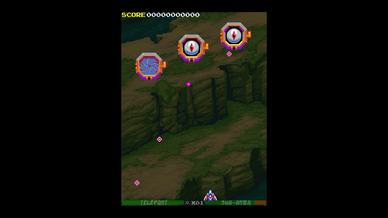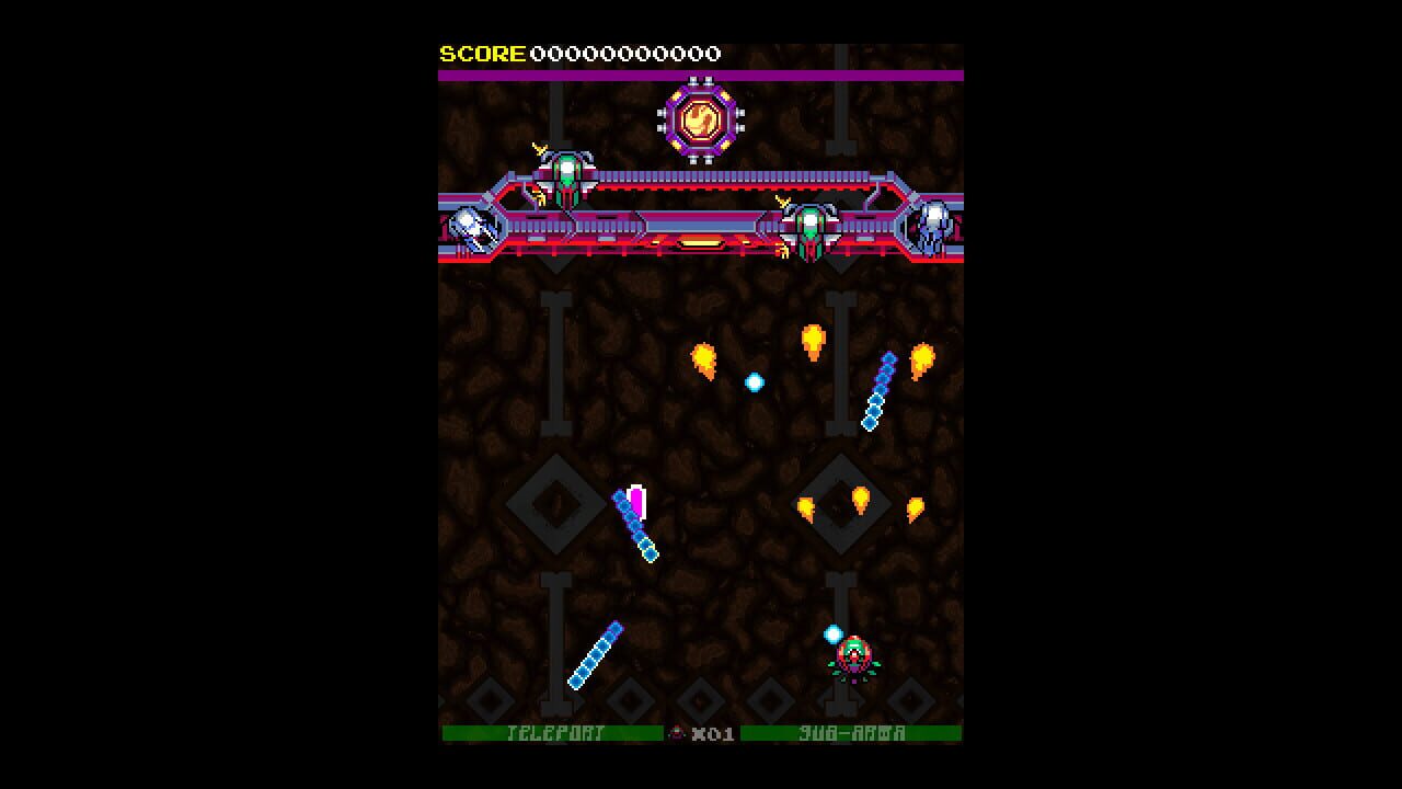 A vertical arcade shoot'em up with an inventive teleport system, lots of fast-blazing action and explosions, tons of boss fights, a risk/reward based score system and a proper challenge for both veteran and new players of the genre.