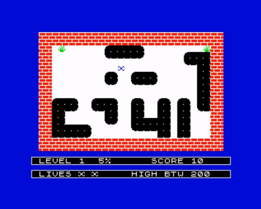 The player guides Zippy, an X-shaped sprite, around a maze, viewed top-down, with solid walls, hazards and collectable rewards. The view of the maze scrolls randomly right, left, up or down. The object is for the player to survive for a period of tim...