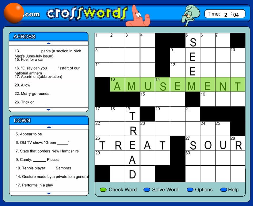 Surf through SpongeBob's crossword!