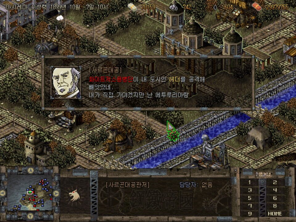 A Korean hybrid strategy game where the player moves around a map and manages units like in a RTS game while combat, when units on the map meet, is turn based. Units are made of a 3 by 3 grid with each section containing people or vehicles in variou...