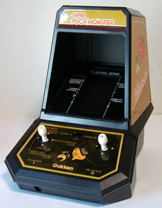 Reskin of Coleco's Pac-Man handheld, but without the Pac-Man license (instead using Gakken's own Puck Monster character).