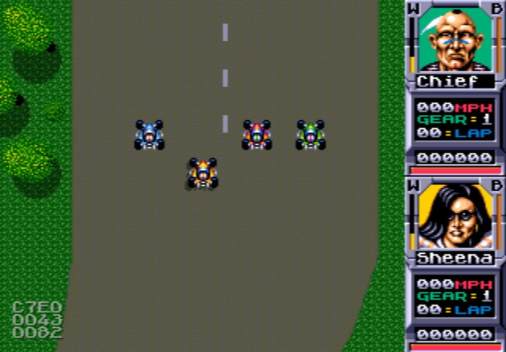 A cancelled top-down racing action game for the Sega Genesis.