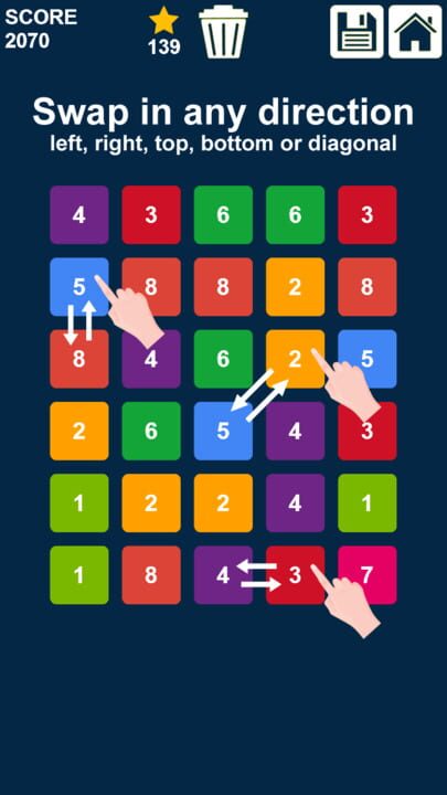 Swap n Merge is a relaxing and brain training match 3 number game.