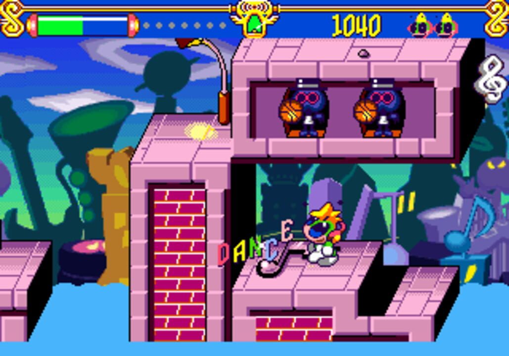 King Dirge is trying to steal the rhythm out of Planet Rhythmia! It is up to Tempo, the hyper groovin' grasshopper with special "Sound Energy" to save the world of music from the evil clutches of King Dirge.