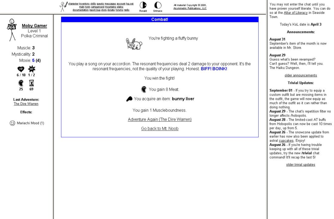 Kingdom of Loathing is a browser-based role-playing game.