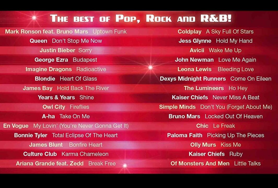The most popular music show in the world is coming to your living room. Sing and sway to the official music videos of your favourite artists, including Justin Bieber, Olly Murs, Mark Ronson feat. Bruno Mars, Queen and many more.